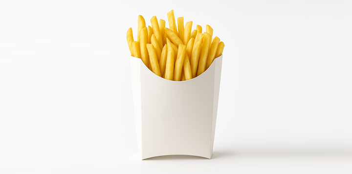 Keep fries crisp and fingers clean with this open-top, grease-proof sleeve. Fully customizable and compostable, it’s ideal for QSRs, cafes, and food trucks.
