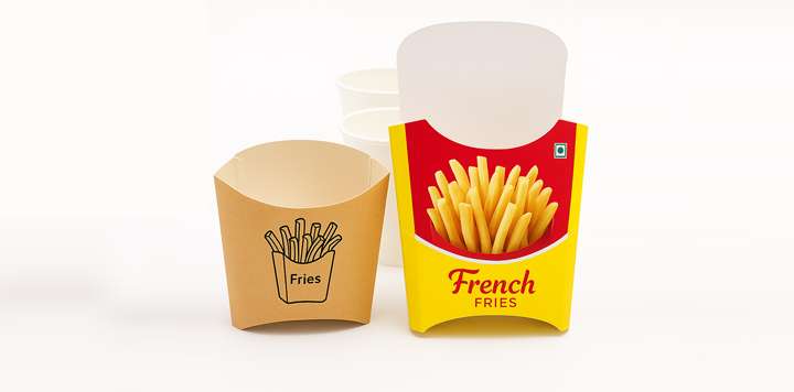 | Ideal forFrench Fries Sleeve | MaterialPaper gsm (40-70) | ReusableNo | BiodegradableYes | Compostable Yes |